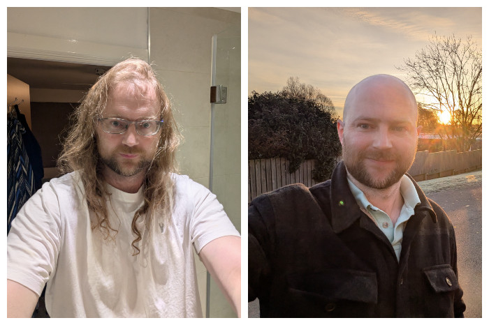 In photo three, the nervous man transforms into a confident, grinning one, the setting sun reflecting off his now-bald head. “It was time,” the caption says, and the more than 5,500 commenters agree. “Their eyes always shine afterward,” one person wrote. “You went from 3rd basement IT support straight to CTO with corner office on the 50th floor my brother,” another said. Or, as a different person put it: “He now hot as hell!”