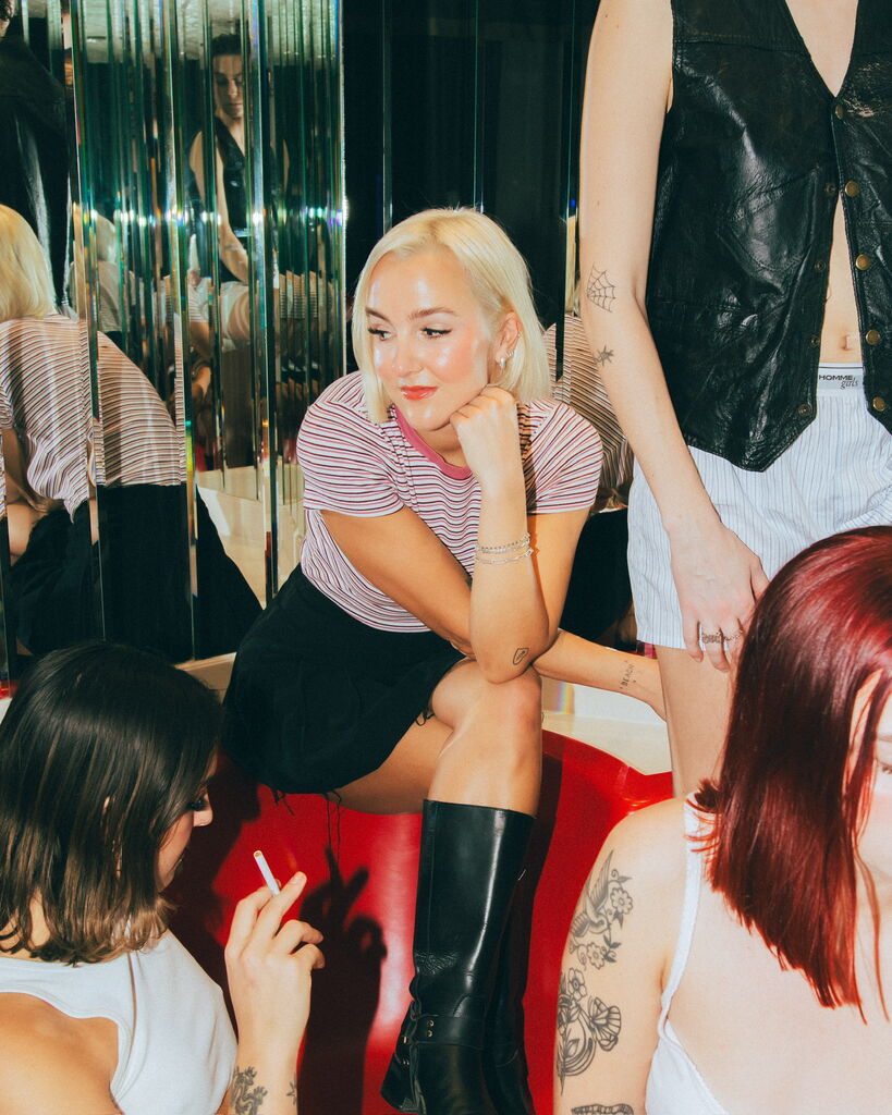 “I think it’s kind of different for all of us. I know that Leandra, who is queer, probably deals with this the most. Young queer people who are discovering themselves use her as a role model and a reason for coming out. I think it obviously feels amazing for her, but she definitely feels a responsibility to give really good advice. Sometimes people will just tell her way too much information about their lives and not think of her as a real person, and it’s a lot for her to carry, but also she takes it with grace. She wears the ‘lesbian of the year’ crown proudly and it’s amazing to be a role model for women to get into music. I think the way that we handle it is by not taking ourselves too seriously. Yeah, we’ll give you advice, but maybe you shouldn’t necessarily take it!”
