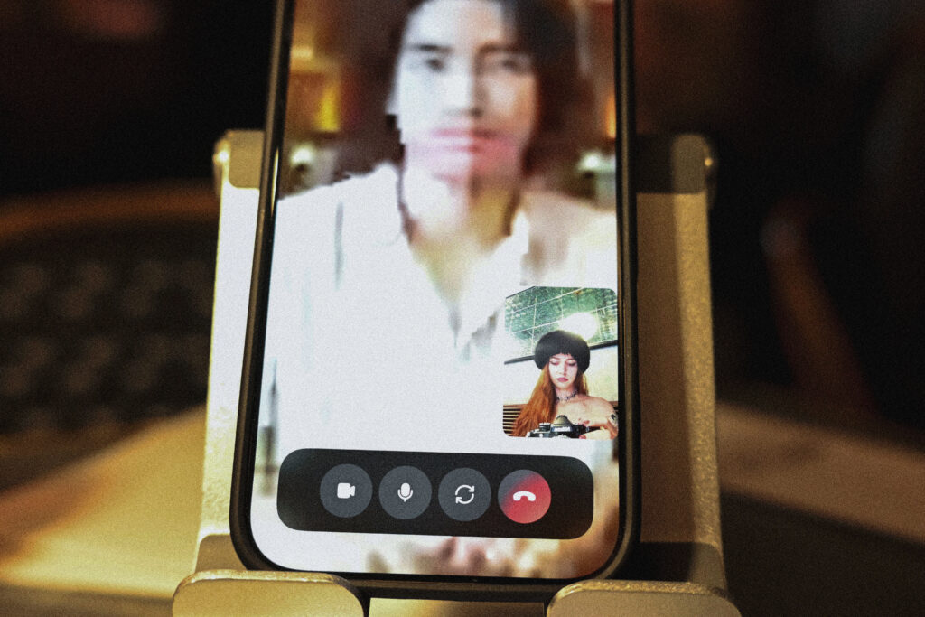On a two-way video call, though, I’m forced to confront the dissonance head-on. I can’t make meaningful eye contact with a person off-screen, or type a note on my phone, without escaping my date’s notice. Yet their lack of humanity is equally apparent: not just in the superficiality of their compliments, the glitchy video, or the lag time between responses—which alone creates an unsettling, Uncanny Valley quality—but the familiar conversational patterns of AI slop. There’s no way to approach flirting with a chatbot in public that doesn’t induce a flush of humiliation, but I give it my best shot, channeling the seductive body language and banter I might direct to a fellow human—only to find that it falls on deaf ears as they forge unflinchingly ahead, complimenting my hat for what must be the fiftieth time.